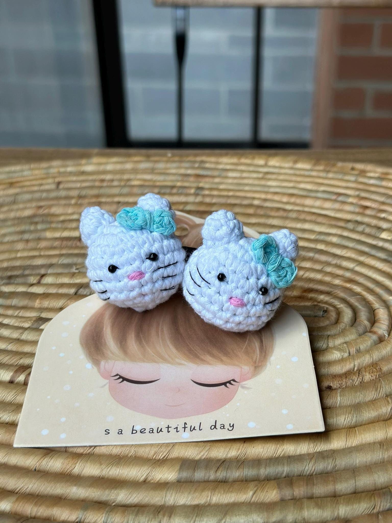 Handmade Cotton Kitty Hair Ties, Crochet Hello Kitty, School-aged children Cute and Soft Cat Hair Accessories, Handcrafted, Amigurumi