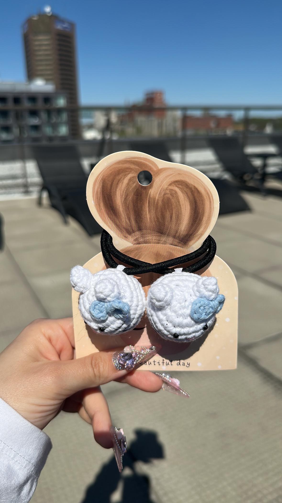 Add a touch of adorable charm to your everyday look with these Handmade Cotton Kitty Hair Ties. Each set includes two cute and cuddly kitty faces, crocheted from soft, high-quality cotton yarn in a soothing white color. Choose from four delightful pastel accent colors: purple, blue, yellow, and light blue, to perfectly match your outfit or mood. Whether you're styling a ponytail, bun, or braid, these kitty hair ties will hold your hair securely while adding a playful touch.