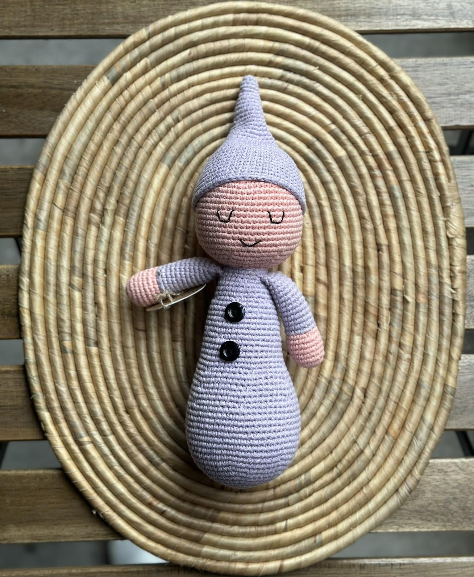 Introduce your baby to a world of softness and serenity with our Handmade Cotton Yarn Sleeping Baby Doll. This lovingly crafted doll is made from 100% natural cotton yarn, ensuring it is gentle on your baby's skin. The charming sleeping face and adjustable hat provide a cute and comforting touch, making it an ideal companion for sleep time. Its soft texture and gentle design are perfect for helping soothe and calm babies, making bedtime a more peaceful experience. Ideal for newborns, this doll is not only a delightful cuddle buddy but also a wonderful addition to any nursery.