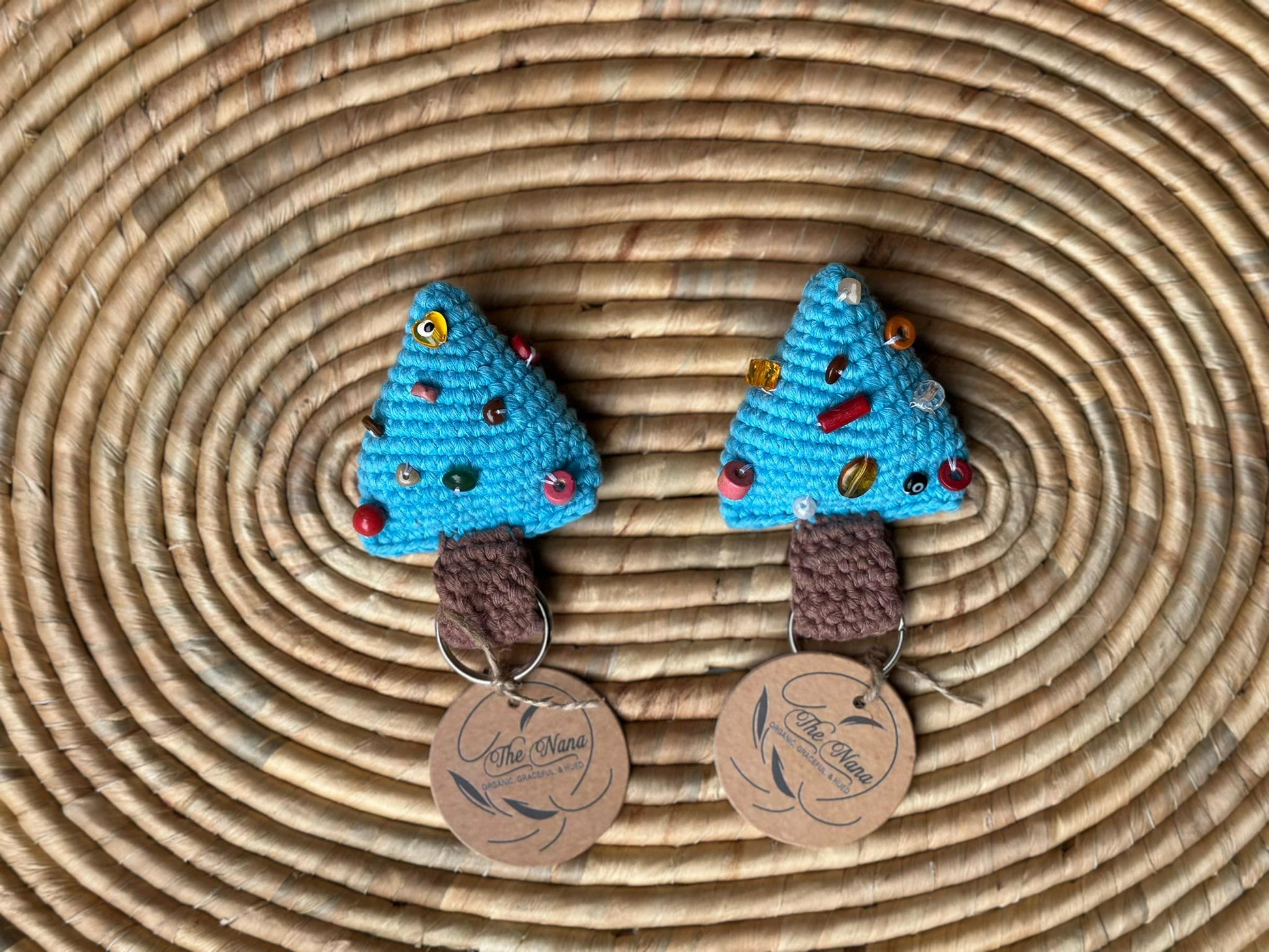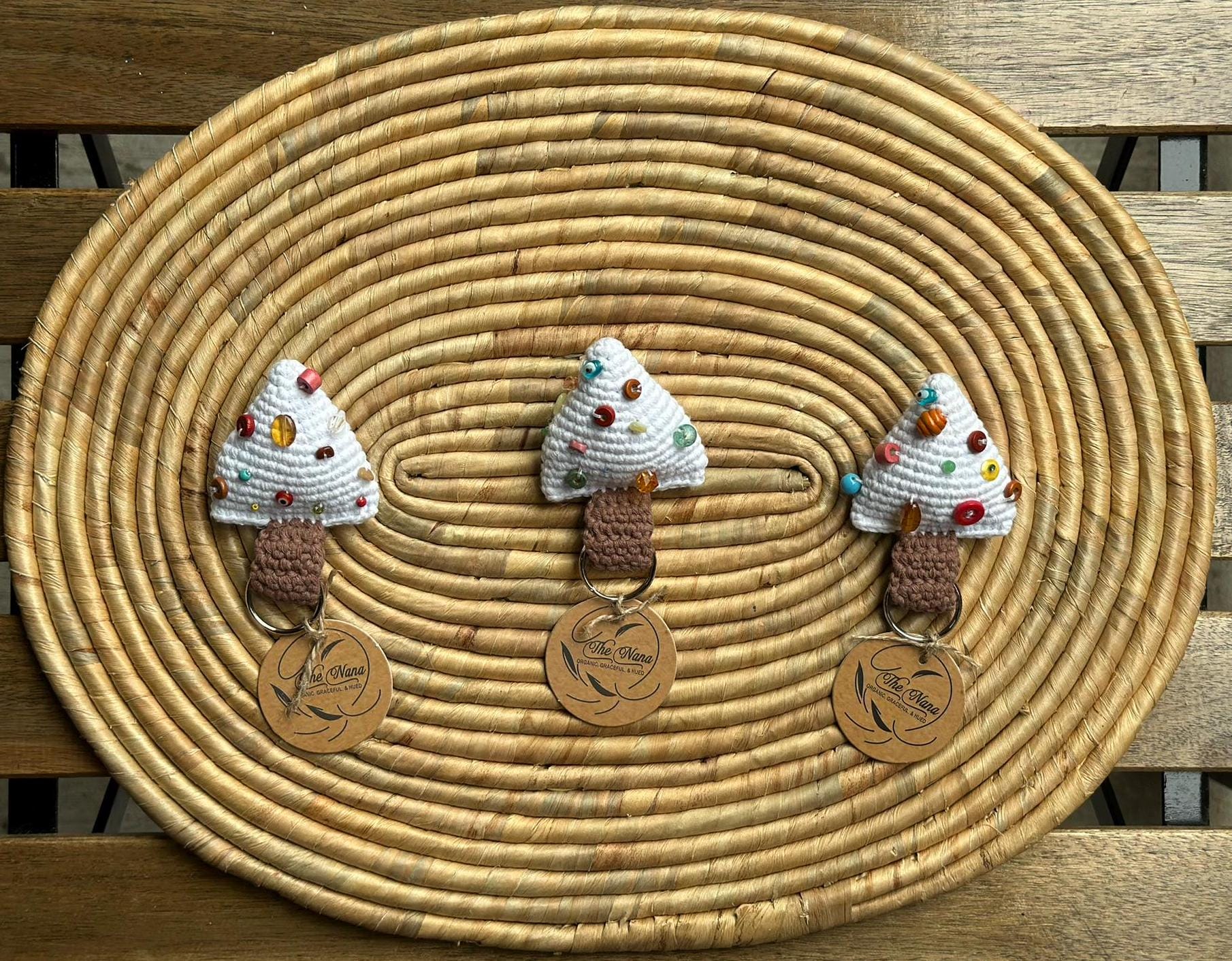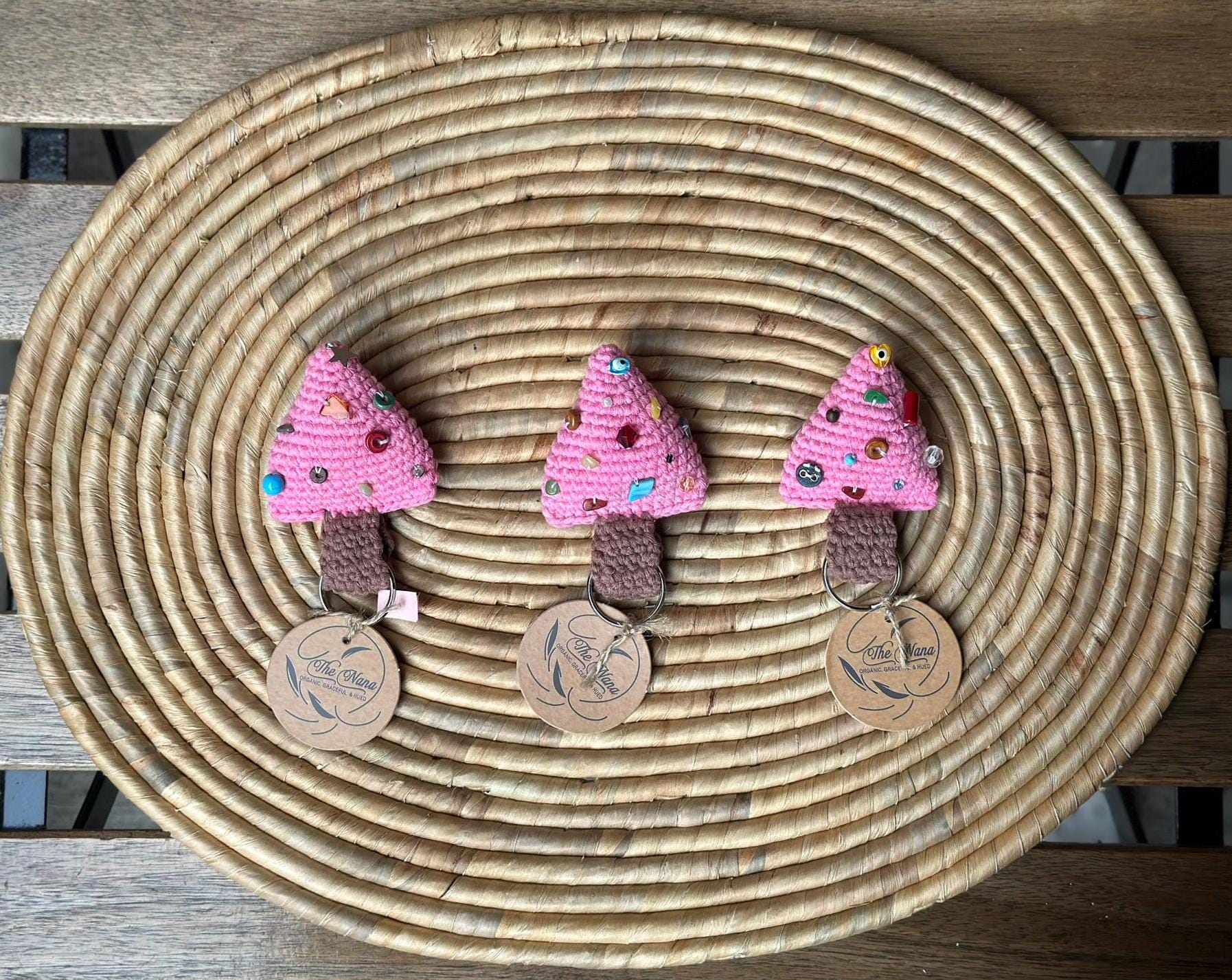 Celebrate the holiday spirit year-round with these charming Handmade Crochet Christmas Tree Keychains. Expertly crafted from 100% cotton yarn, each keychain features a delightful Christmas tree design adorned with colorful "ornament" embellishments. Available in a variety of festive colors, these keychains are perfect for adding a touch of holiday cheer to your keys, bags, or as a thoughtful gift.