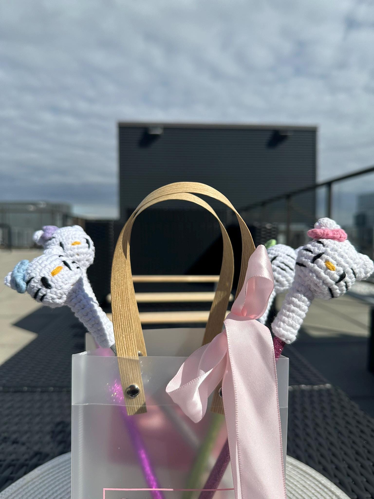 Each pen is wrapped in glittery sparkle, with a soft, hand-crocheted kitty head on top, complete with colorful bows ππππ. A perfect gift for kawaii lovers, teachers, students, or anyone who adores cute desk accessories.