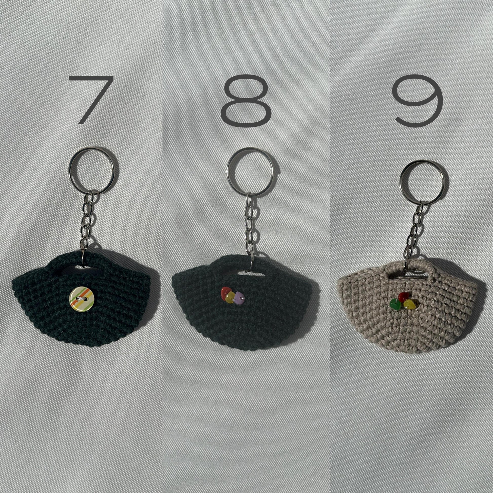 This adorable handmade mini crochet bag keychain is the perfect accessory to brighten up your keys, bag, or summer outfit! Carefully crafted with love using 100% cotton yarn, each piece is unique and full of charm.