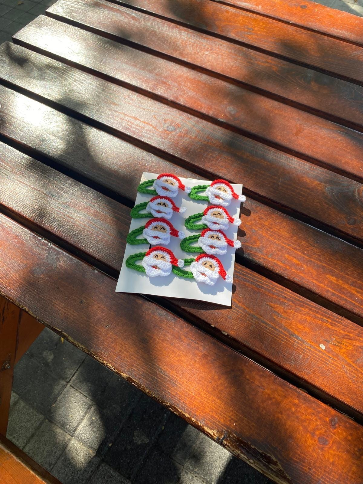 Celebrate the holiday season with this set of 2 handmade Santa Claus hair clips! Each clip is carefully crocheted with high-quality cotton yarn, featuring a jolly Santa Claus design that brings festive cheer to your hairstyle. These clips are perfect for adding a fun, holiday touch to your outfit or gifting to friends and family.